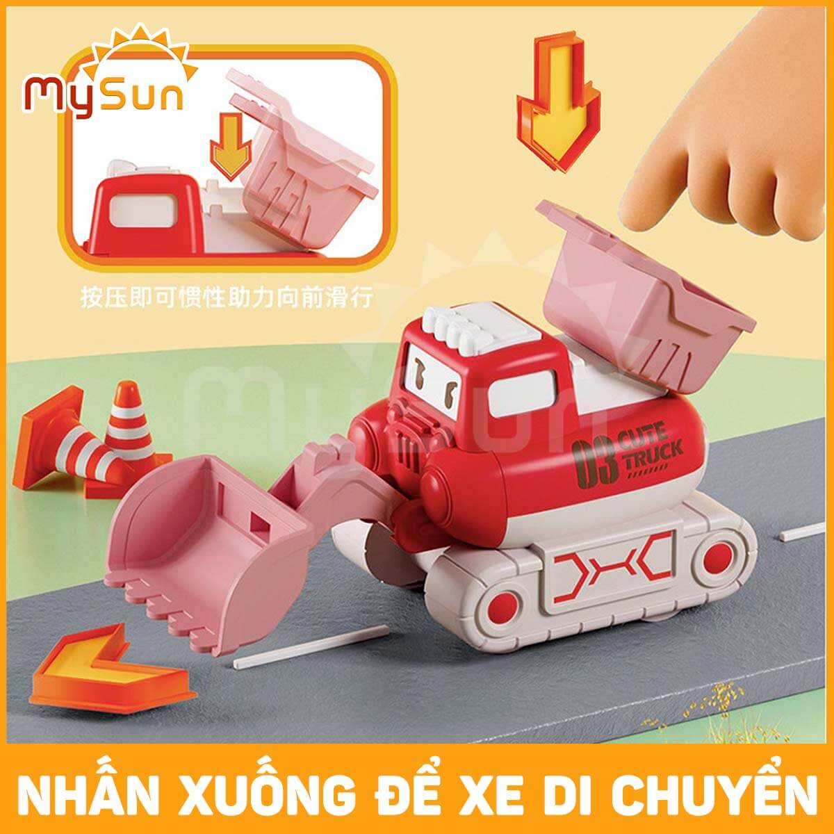 • Không chỉ là xe mô hình mà có thể nhấn cót di chuyển, nhiều khớp nâng, hạ như thật. THÔNG SỐ Ô TÔ TRẺ EM MÁY XÚC MÚC, XE ỦI, GẠT