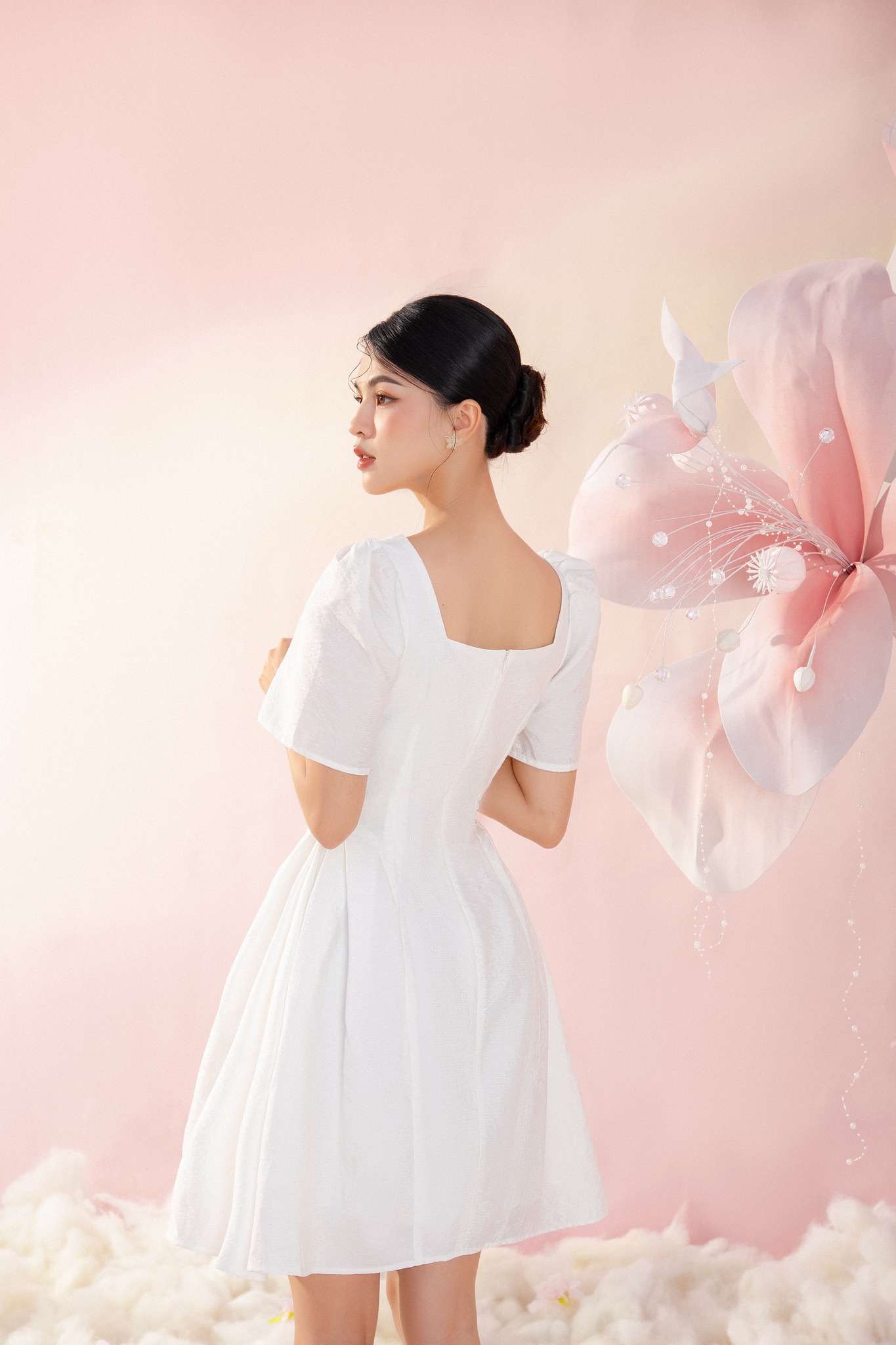 ღ THÔNG TIN SẢN PHẨM: Tên sản phẩm: Đầm trắng cột nơ Thông số size: S, M, L, XL Chất liệu: Chất xốp kim cương Chiều dài Đầm: Size S: 100
