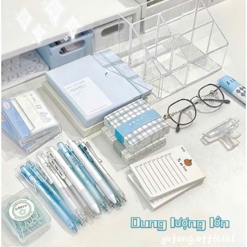 Ống cắm bút trong suốt để bàn trang trí đẹp xinh đựng đồ dùng học sinh makeup nhiều ngăn tặng quà
