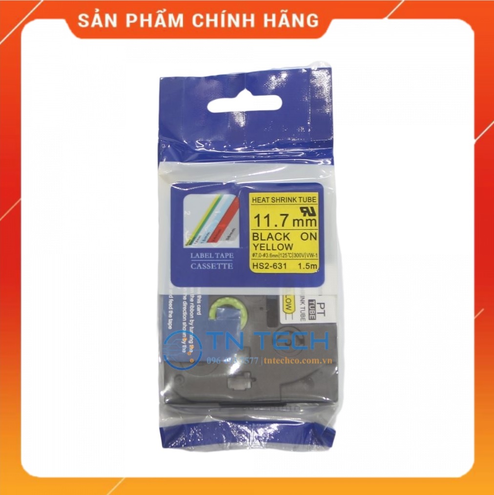✨Ống co nhiệt HS2-631 - Đen nền vàng 11.7mm x 1.5m - Dùng cho máy in ống BROTHER - AIMO [Hàng nhập khẩu]