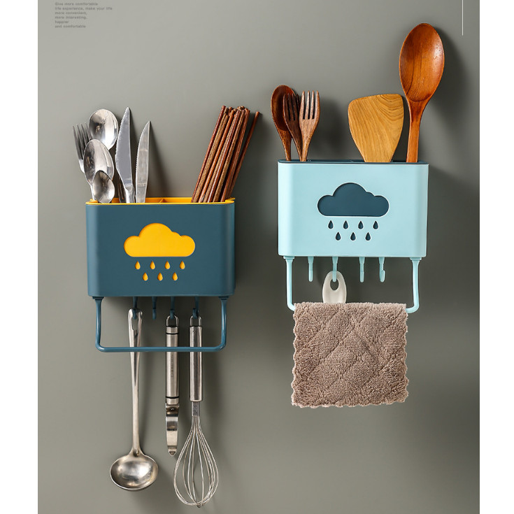 Tên sản phẩm : Ống đũa treo tường đám mây tiết kiệm diện tích có móc treo dụng cụ nhà bếp tiện ích - giao màu ngẫu nhiên
