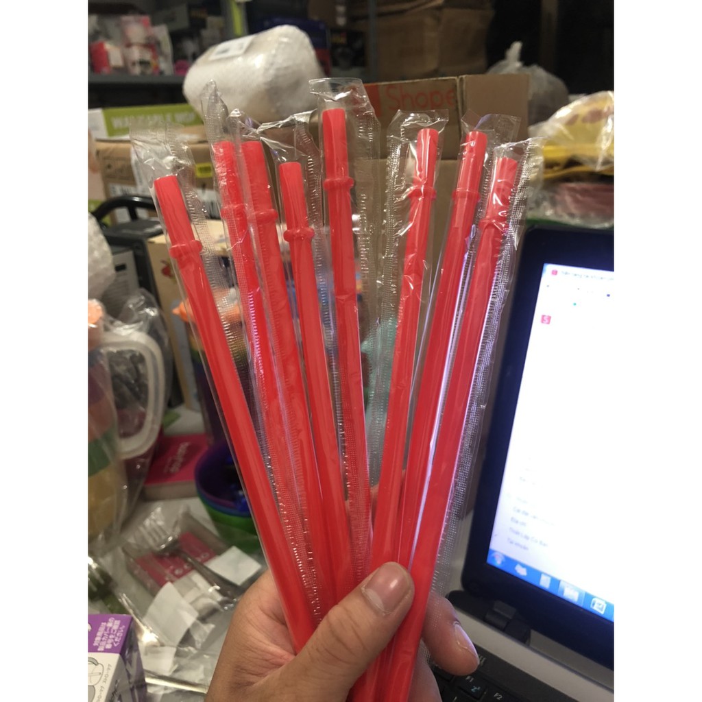 Kích thước các loại ống hút: - Ống hút trân châu: đường kính ống 12mm, dài 215mm - Ống hút thẳng: 6mm x 215mm - Ống hút cong: 6mm x 215mm -