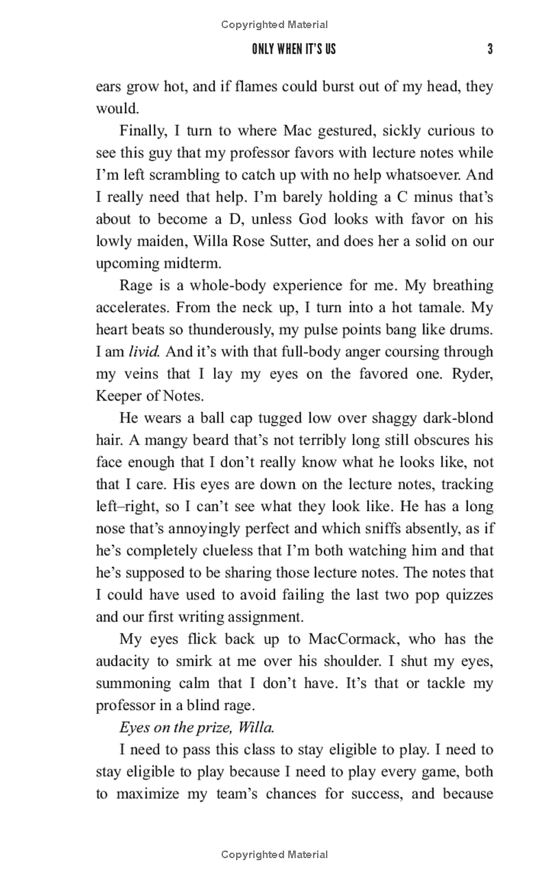 Ever since she sat next to me in class and gave me death eyes, Willa Sutter's been on my shit list. Why she hates me, I don't know. What I do know is that Willa is the kind of chaos I don't need in my tidy life. She's the next generation of women's soccer. Wild hair, wilder eyes. Bee-stung lips that should be illegal. And a temper that makes the devil seem friendly.