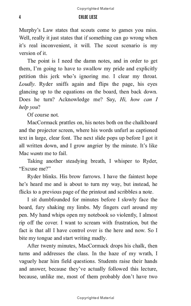 She's a thorn in my side, a menacing, cantankerous, pain-in-the-ass who's turned our Business Mathematics course into a goddamn gladiator arena. I'll leave this war zone unscathed, coming out on top…And if I have my way with that crazy-haired, ball-busting hellion, that will be in more than one sense of the word.