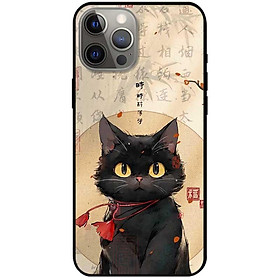 Ốp lưng cho IPhone 12 - 12 Pro - 12 Pro Max - 13 Mini - 13 - 13 Pro - 13 Pro Max - Mèo Đen Nơ Đỏ - Hàng Chính Hãng