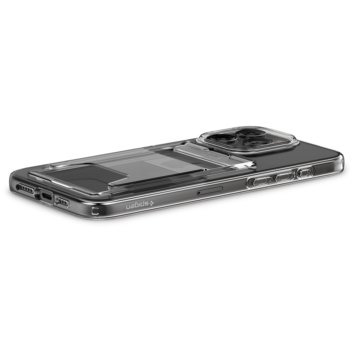 Ốp lưng Spigen Crystal Slot Crystal Clear cho iPhone 15 có khe đựng thẻ ở mặt lưng, có thể đựng được tới 2 thẻ.