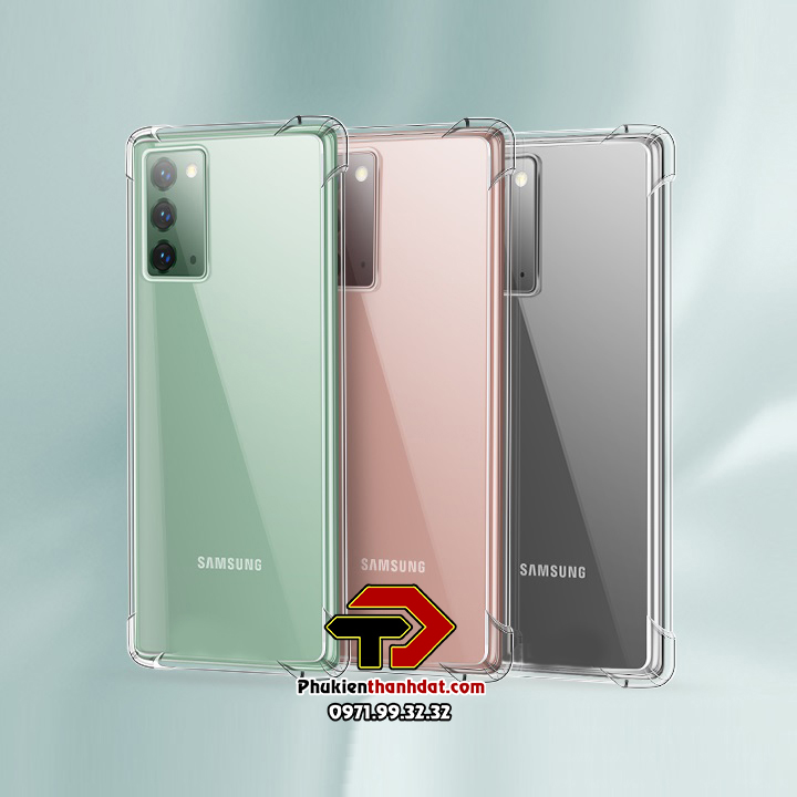 Ốp lưng dẻo trong chống sốcSamSung Galaxy Note 20 được làm từ chất liệu TPU dày 0.9 mm,mềm dẻo, trong suốt, có độ đàn hồi cao, có thể bóp lại, cuộn lại mà không biến dạng. Ốp lưng được thiết kế với 4 góc dày dặn hơn (hầu hết khi rơi máy các góc sẽ va chạm đầu tiến), kết hợp với phần khung viền từ nhựa dẻo TPU cao cấp khá dầy dặn (~1mm).Phần tiếp xúc với cạnh máy có làm thêm các đường gân không những giúp cho ốp cầm chắc tay hơn mà còn tăng khả năng đàn hồi, bảo vệ toàn bộ máy luôn an toàn trước mọi va chạm, mặt lưng còn 4 chấu nhỏ nhô cao để nâng phần lưng của máy lên khi để lên bàn hạn chế xước Camera sau của máy.Ốp lưng dẻo trong chống sốcSamSung Galaxy Note 20 các chi tiết được hoàn thiện rất đẹp, các vết cắt mịn, đều. Các phím bấm được làm nổi giúp thao tác dễ dàng.