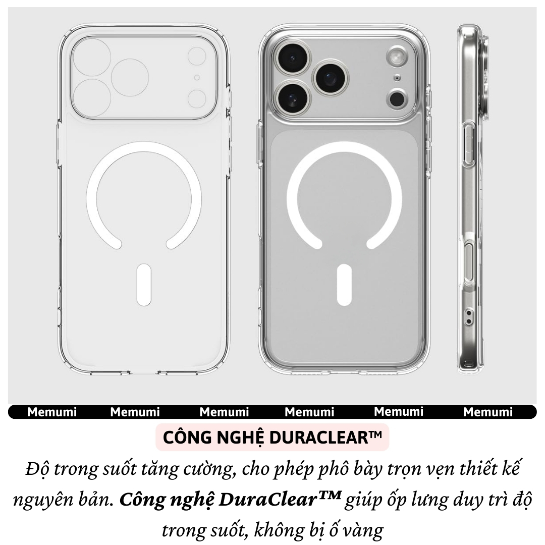 Ốp Lưng Trong Suốt Chống Ố Vàng DuraClear Tương Thích Magnetic Cho iPhone 17 Series (Pro / Pro Max / Air) Điểm Nổi Bật: Trong suốt lâu dài – DuraClear