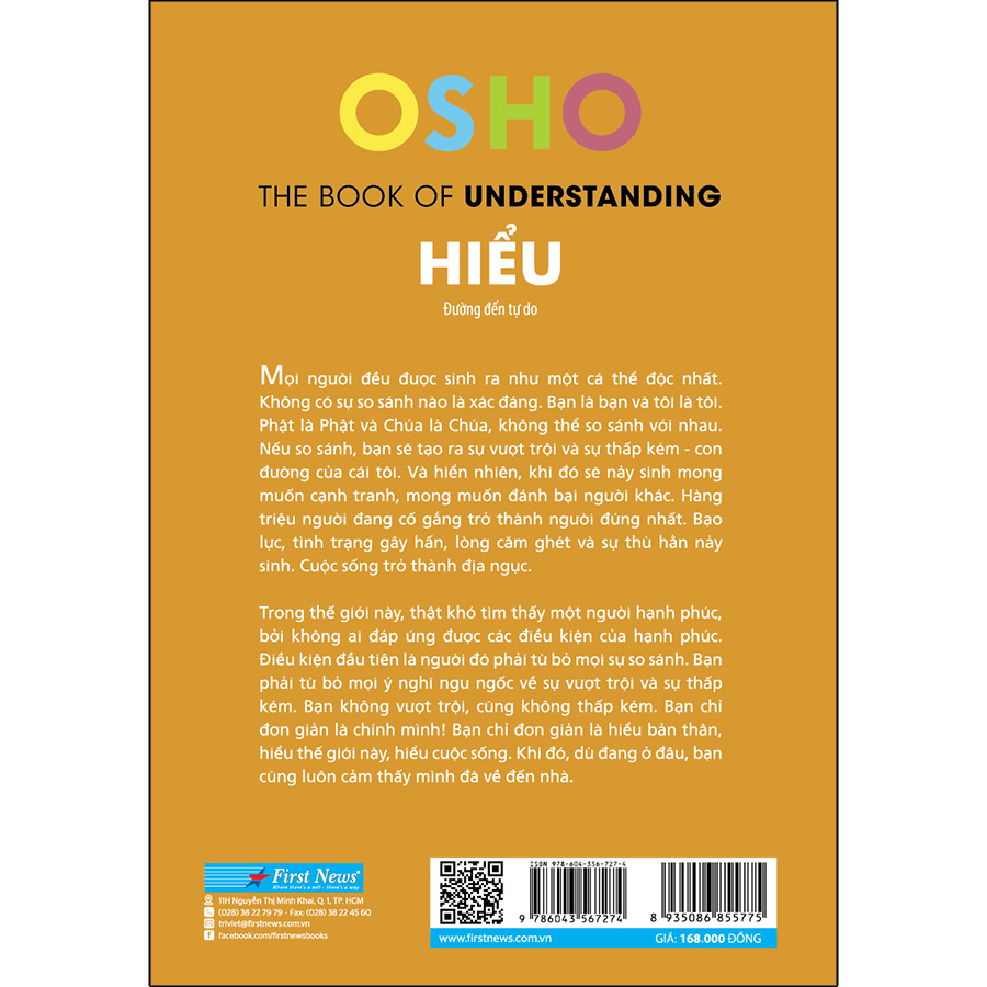 Đó chỉ là một vài trong số rất nhiều điều thú vị mà Osho sẽ mang lại cho bạn đọc qua 5 chương sách “Hiểu – Đường đến tự do”. Hãy đọc để tự khám phá, tự tìm đến tự do của riêng mình.
