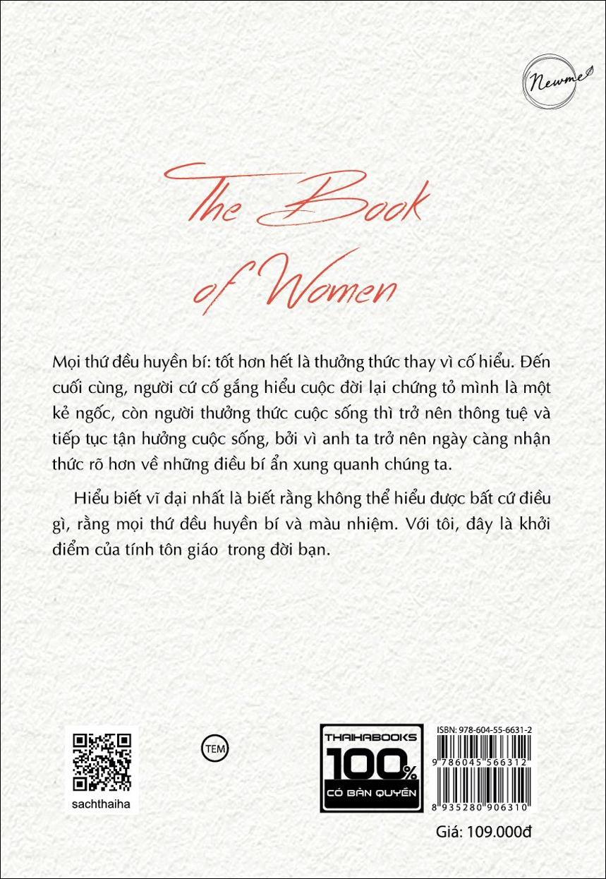 Trong cuốn Phụ nữ, tác giả sẽ phân tích giá trị và tầm quan trọng của sức mạnh nữ tính. Ông nghiên cứu các niềm tin, định kiến bị áp đặt lên phụ nữ từ trước đến nay, khiến người phụ nữ không thể phát huy tiềm năng của mình. Từ đó, ông giải phóng họ và khẳng định lại những phẩm chất tuyệt vời của người phụ nữ, đó là tình yêu thương, niềm vui, và trái tim thấu cảm, những điều vô cùng cần thiết cho tâm hồn và con đường tâm linh.