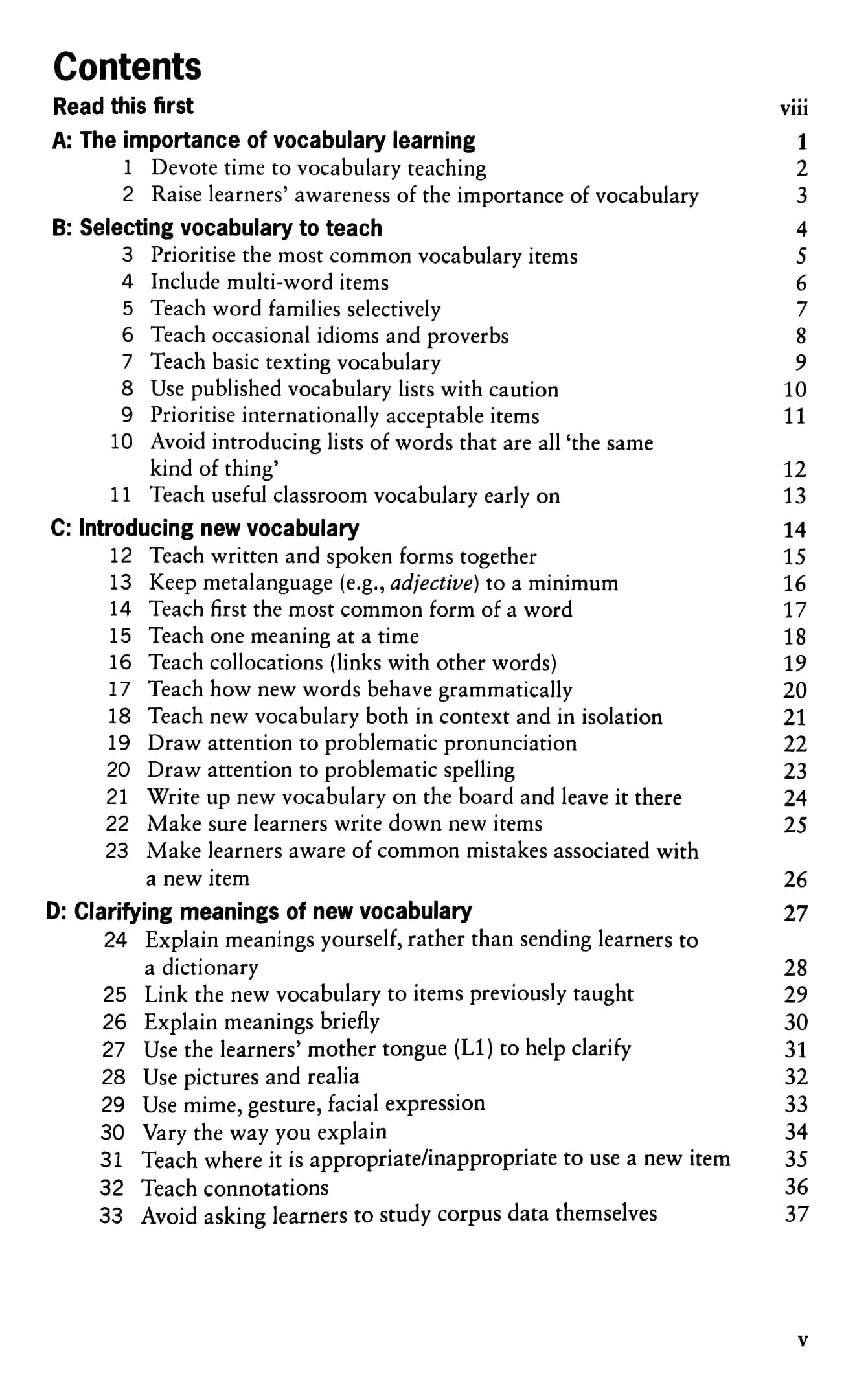 This concise, but comprehensive book draws on Penny Ur's extensive teaching experience as well as insights from research in applied linguistics. It explores a wide range of topics including introducing new vocabulary, reviewing and practising new words and expressions, and ways of expanding and enriching learner vocabulary. The author also provides practical classroom illustrations and ideas for implementation, helping teachers to ensure more effective learning. Penny Ur's 77 Tips for Teaching Vocabulary is an essential reference for teachers of all levels of experience.