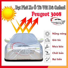 ✨[PEUGEOT 3008] Bạt Phủ Ô Tô Vải Dù Oxford, Tráng Nhôm Cao Cấp, Áo Trùm Bảo Vệ Xe PEUGEOT 3008, Bạc Phủ Trùm Chống Nóng Chống Mưa, Chống Xước Xe, Bạt Của Xưởng Được May Theo Kích Cỡ Xe, Cam Kết Vừa Xe, Bền Và Đẹp Tới 2 Năm