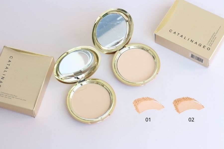 - Phấn Phủ Siêu Mịn Catalina Pact #01 Natural Beige Geo với các hạt phấn chứa Vitamin dễ dàng bám đều lên da, che phủ lỗ chân lông, mang đến làn da láng mượt, mịn