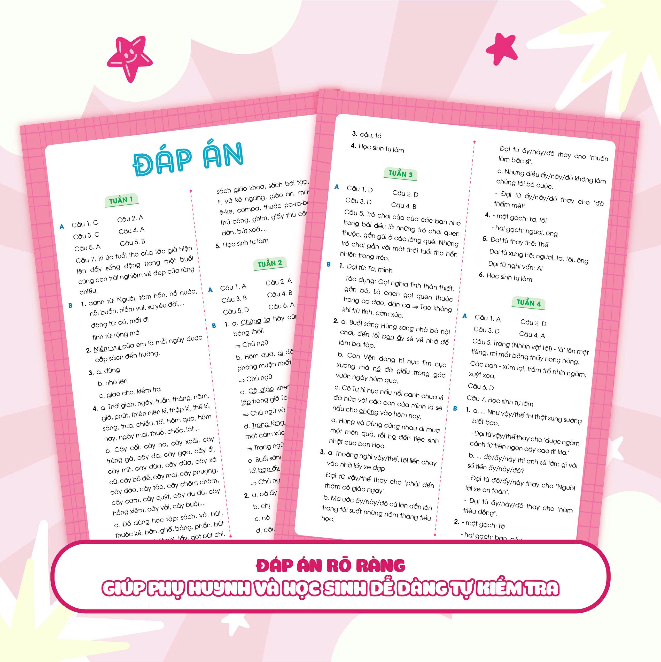 4. Đáp án chi tiết, rõ ràng Phần đáp án chi tiết ở cuối sách giúp phụ huynh và các con có thể tự đối chiếu và đánh giá sau khi hoàn thành bài tập, từ đó có phương pháp ôn luyện phù hợp cho con .