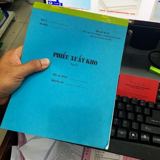 Phiếu xuất kho 3 liên A4 kích thước 20cm x 25cm, cuốn 150 tờ gồm 50 bộ 3 liên: trắng, hồng, xanh.