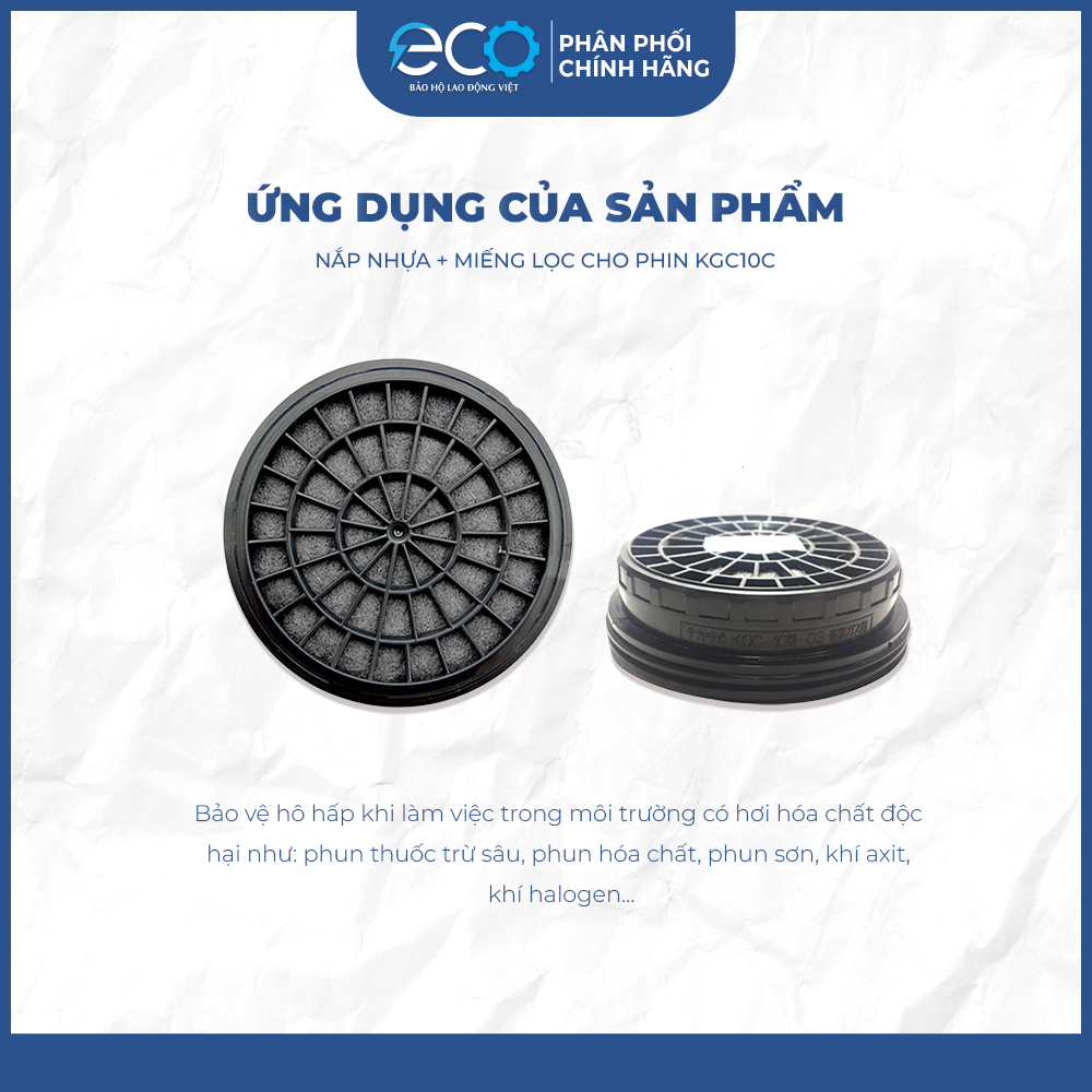 Mua tại TiktokPhin lọc than hoạt tính Koken mã KGC-10C là loại phin lọc chuyên dụng của hãng Koken Nhật Bản, được thiết kế dùng kèm với mặt nạ phòng độc Koken G7, đáp ứng nhu cầu bảo vệ hô hấp trong môi trường độc hại như: Phun PU (Polyurethane): thường dùng trong các ngành sơn, sản xuất nội thất, cách nhiệt, chống thấm… PU có thể phát sinh hơi hóa chất độc hại như isocyanate, cần phin lọc chuyên dụng. Phun xịt thuốc trừ sâu: môi trường nông nghiệp hoặc các lĩnh vực sử dụng hóa chất bảo vệ thực vật, thuốc trừ sâu, diệt cỏ... Phin lọc giúp ngăn chặn hơi hóa chất độc hại xâm nhập vào hệ hô hấp. Thông tin chi tiết phin lọc Koken KGC-10C: