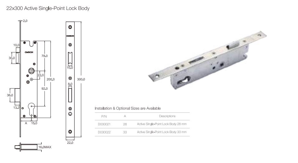 Mua tại TiktokBộ thân Khóa đơn điểm ( 22*300 Active Single-Point Lock Body)