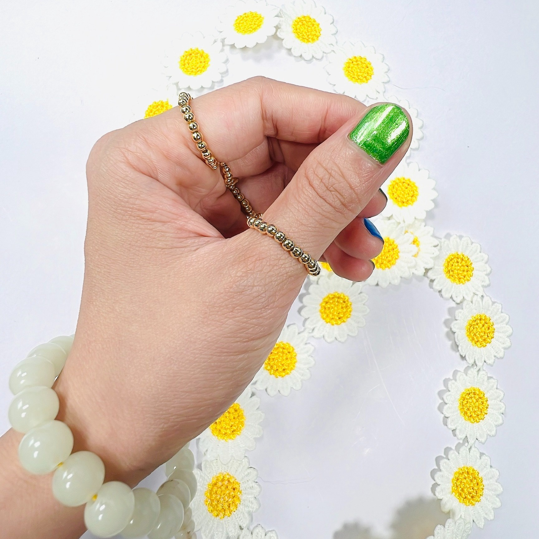 NHẪN HANDMADE NGỌC TRAI NHỰA CAO CẤP MÀU VÀNG KIM MÃ 04 LẤP LÁNH Thiết kế : Viên ngọc trai cao cấp dạng tròn màu vàng kim sang chảnh, sáng lấp lánh Kích cỡ ngón