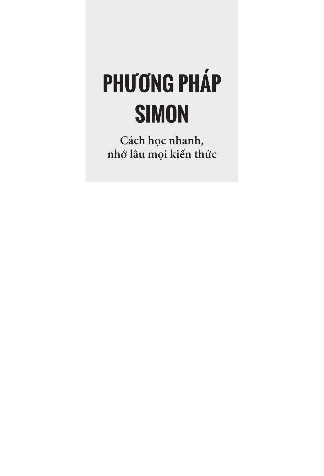 Phương Pháp Simon - Cách Học Nhanh, Nhớ Lâu Mọi Kiến Thức Làm thế nào để học tập đạt hiệu quả cao, tiếp thu và nâng cao kiến thức mới trong một thời gian ngắn. Làm sao để giải quyết được vấn đề này dễ dàng đó là học theo phương pháp Simon. Có nhiều người sẽ thắc mắc rằng học sinh học được một lúc rất nhiều môn và môn nào cũng giỏi. Thực ra người chủ động luôn tích cực học tập ở một mức độ nhất định, họ nắm vững phương pháp học tập rồi và chỉ cần đầu tư là sẽ có hiệu quả tốt đó cũng là một trong tinh hoa của phương pháp học tập Simon Trong cuốn “Phương pháp Simon - Cách học nhanh, nhớ lâu mọi kiến thức” đã chia sẻ những cách tiếp cận học tập đúng đắn, giúp người đọc có thể tập trung và hiểu được nội dung bài học một cách nhanh chóng hơn, từ cách xây dựng lộ trình học tập, quản lý thời gian cho đến cách nghiên cứu và đánh giá bài kiểm tra, tác giả đều cung cấp cho độc giả những gợi ý và phương pháp thực tiễn bám sát với thực tế chia nhỏ các kiến thức thành các “Chunking” (những điểm kiến thức) khác nhau để dễ dàng ghi nhớ Cuốn sách bao gồm 6 chương với nội dung: