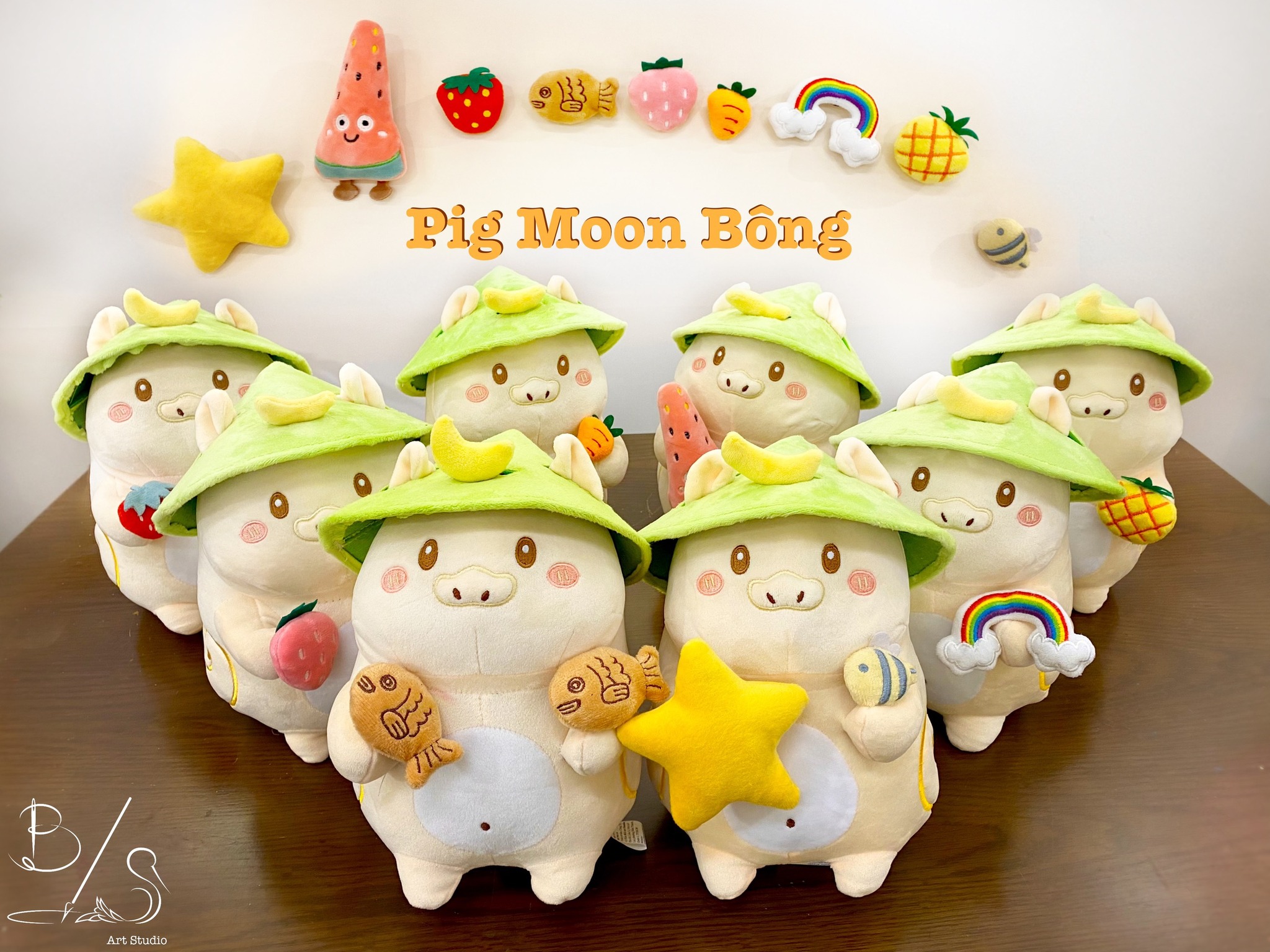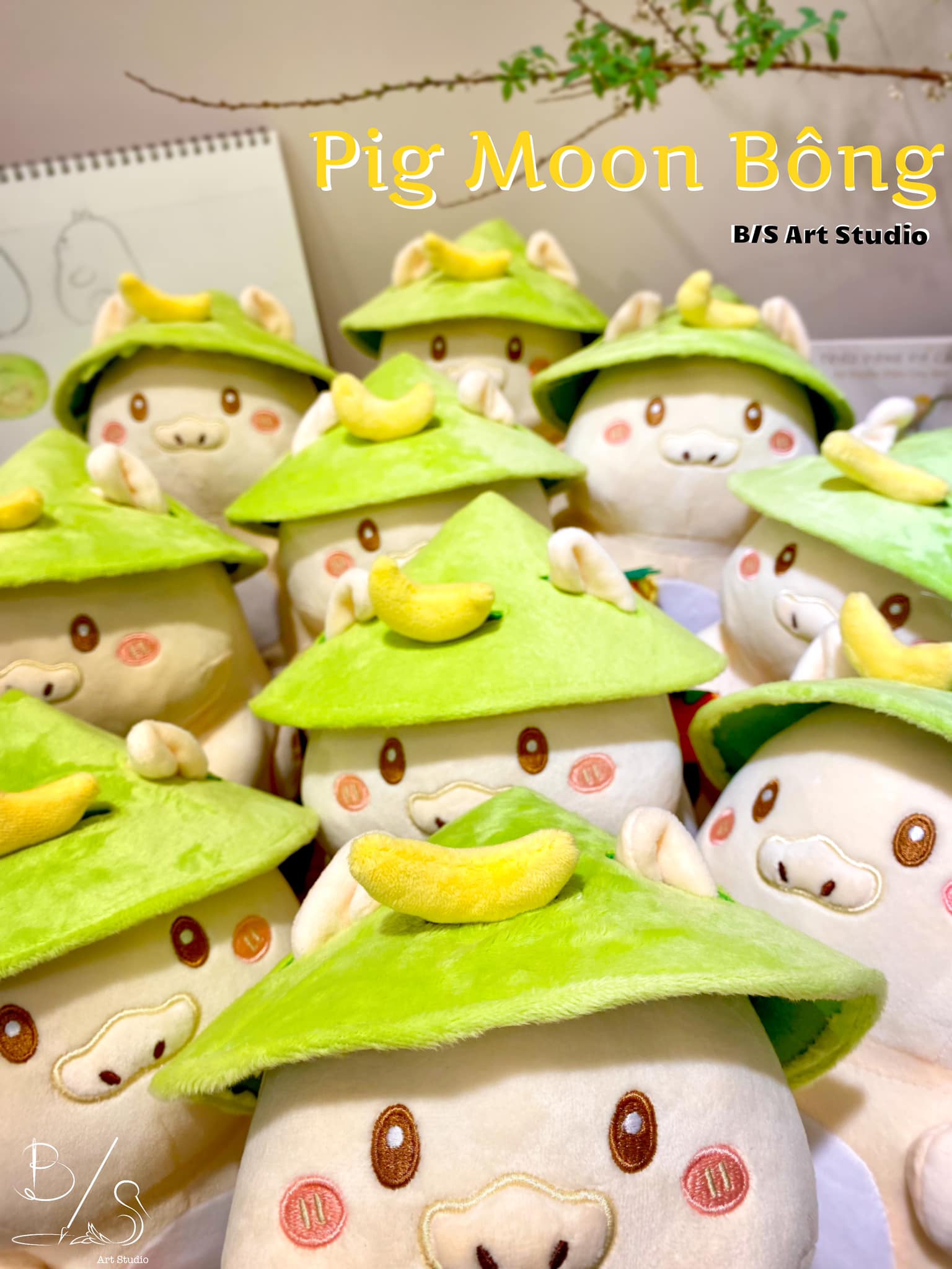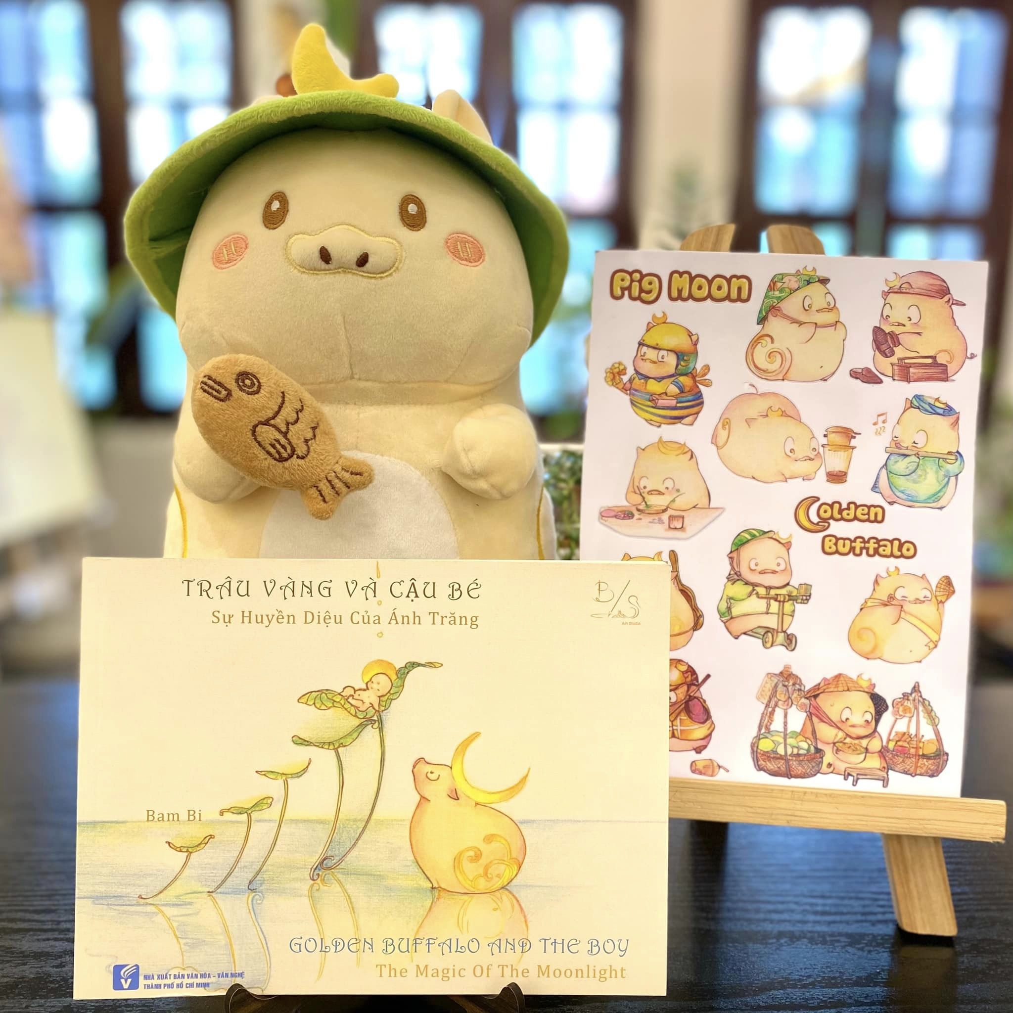 PIG MOON BÔNG – NGƯỜI BẠN ĐỒNG HÀNH CÙNG TUỔI THƠ B/S Art Studio xin chính thức giới thiệu một phiên bản PIG MOON mới với chất liệu “nhồi bông” mềm mại, êm ái và mịn màng. Bé “Pig Moon Bông” với chiếc Nón Lá – biểu tượng văn hoá Việt và Xoắn Âm Dương cách điệu được lấy cảm hứng từ tranh dân gian Đông Hồ, cùng Ánh Trăng Khuyết – đại diện cho tri thức trong câu chuyện Trâu Vàng Pig Moon – Sự huyền diệu của Ánh Trăng. Pig Moon không chỉ là người bạn của các bé mà còn là món quà mang giá trị văn hoá và bản sắc Việt Nam. Pig Moon – nhân vật chính trong câu chuyện “Trâu Vàng và Cậu Bé: Sự huyền diệu của ánh trăng”. Câu chuyện kể về sự thay đổi diệu kỳ của Trâu Vàng và hành trình trưởng thành của Trâu Vàng và Cậu Bé. Câu chuyện với những hình ảnh quen thuộc ở Việt Nam ẩn chứa nhiều ý nghĩa.