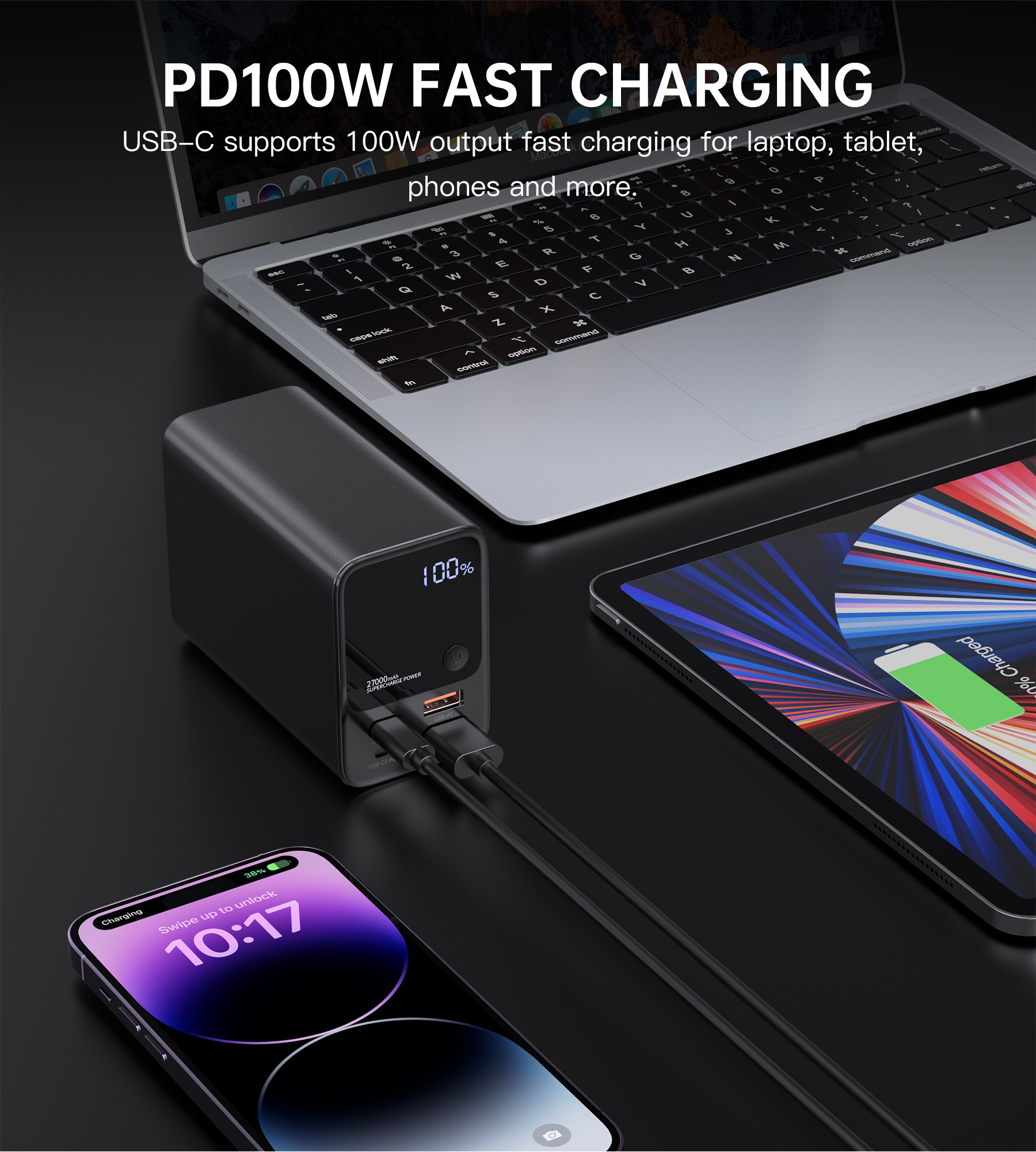- Đóng gói: Hộp 1 sản phẩm và sách hướng dẫn sử dụng – Để đảm bảo nguồn điện năng liên tục cho mục đích sử dụng điện thoại, máy tính bảng hoặc các thiết bị thông minh thường xuyên hoặc cần thiết khi đang đi công tác hay du lịch. Liệu bạn đã chọn cho mình được chiếc sạc dự phòng tốt, phù hợp với nhu cầu sử dụng của mình chưa.? – đã cho ra đời mẫu pin sạc dự phòng có công suất cao với dung lượng rất lớn, lến đến 222.5w và 27000mAh. Đây là thiết bị sạc có công suất lớn nhất từ trước đến nay của hãng. Sẽ là pin dự phòng tuyệt vời mà bạn không thể bỏ qua, đáp ứng nhu cầu sạc pin di động từ điện thoại, máy tính bảng cho đến laptop … – , có thể ước tính pin có thể sạc iP12 mini đến 6 lần, sạc Xi-ao- mi Mi 10 Ultra 3.7 lần, sạc iP12 5 lần, sạc Red-miBook 14 II 1.6 lần, sạc i-Pad Pro 1.9 lần, sạc Mac-book Pro 1.3 lần,…