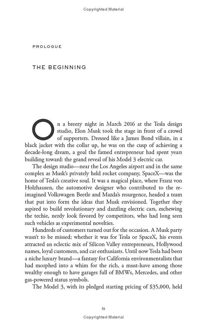 Tesla would undergo a truly hellish fifteen years, beset by rivals, pressured by investors, hobbled by whistleblowers, buoyed by its loyal supporters. Musk himself would often prove Tesla's worst enemy--his antics repeatedly taking the company he had funded himself to the brink of collapse. Was he an underdog, an antihero, a conman, or some combination of the three?