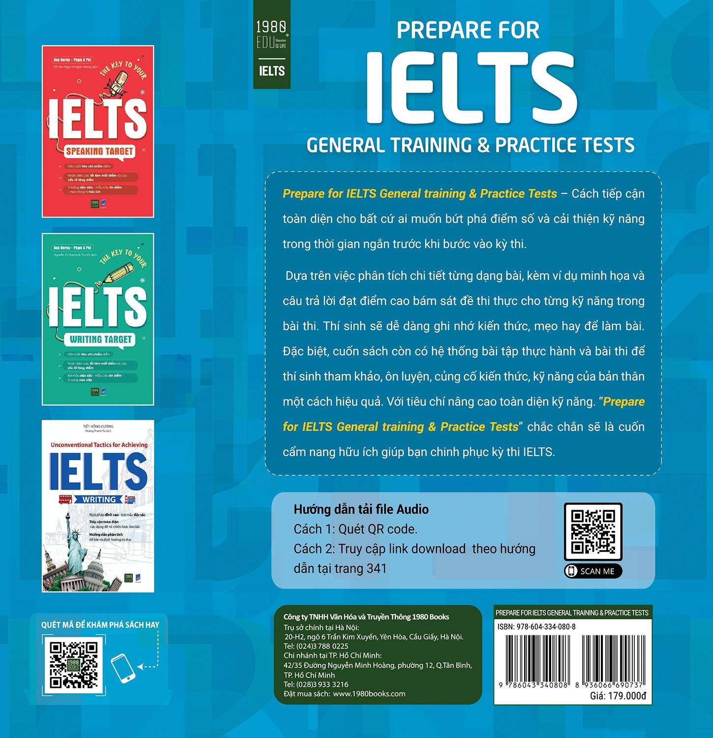 Mua tại TiktokPrepare for IELTS General Training & Practice Tests – Cách tiếp cận toàn diện cho bất cứ ai muốn bứt phá điểm số và cải thiện cả 4 kỹ năng trong thời gian ngắn trước khi bước vào kỳ thi.