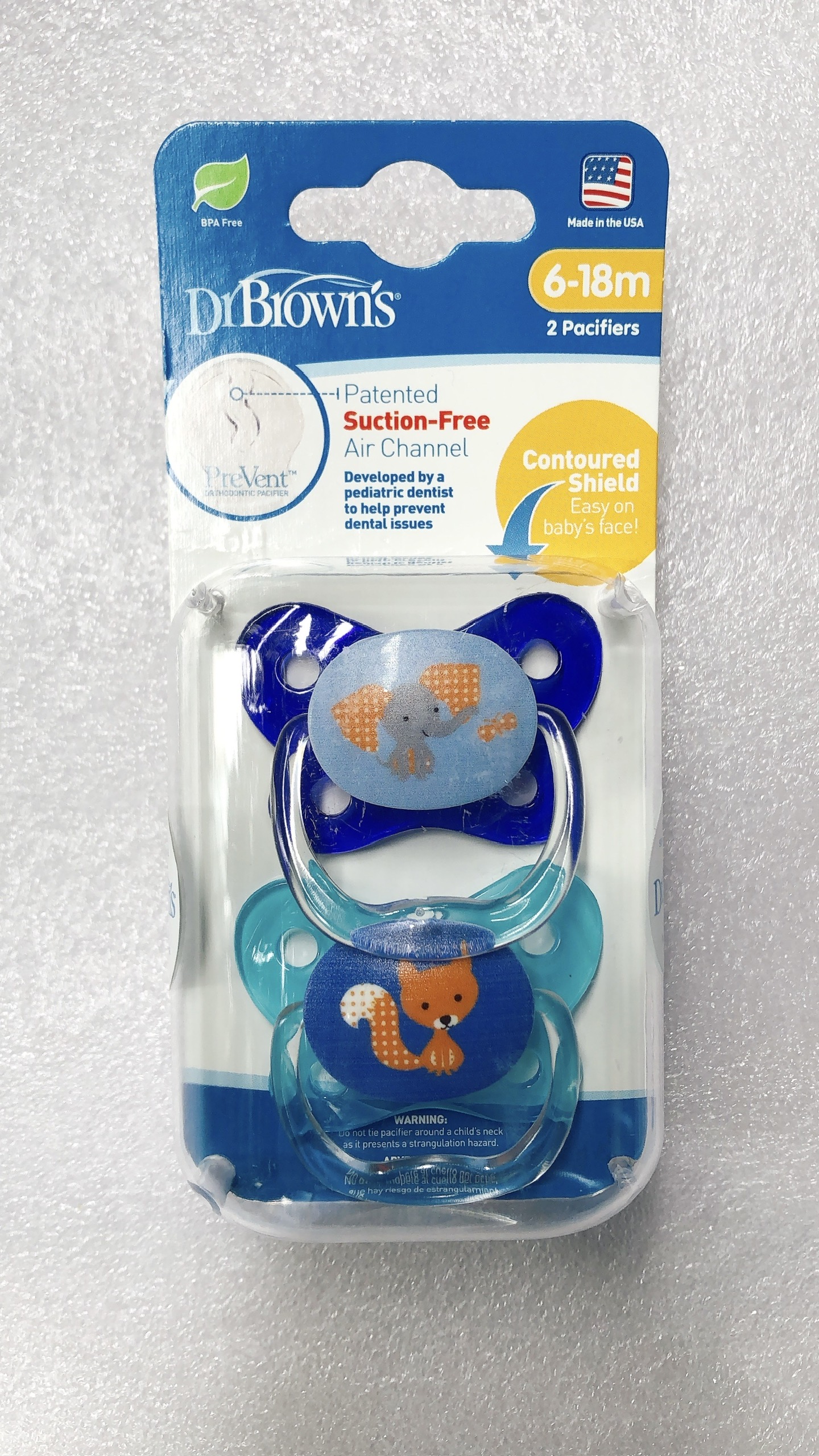 ✨[ PV22001 - Xanh ] Set 2 ty ngậm chống vẩu Dr.Brown's Prevent in họa tiết con voi và con cáo ( 6-18m )