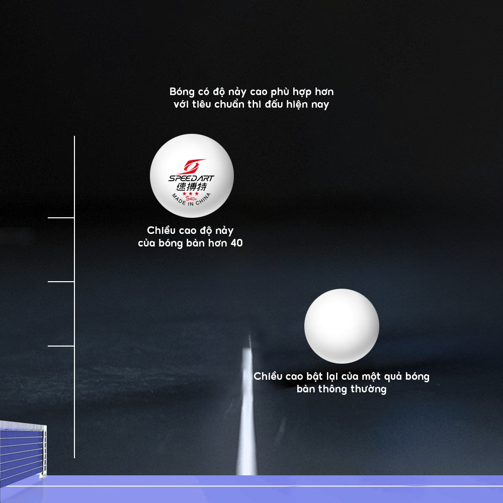 Quả bóng bàn Speed Art được làm từ nhựa ABS, một loại vật liệu bền bỉ và có độ đàn hồi tốt. Điều này giúp quả bóng không dễ bị biến dạng hoặc nứt vỡ khi va chạm mạnh, đồng thời đảm bảo độ nảy ổn định qua nhiều lần sử dụng.