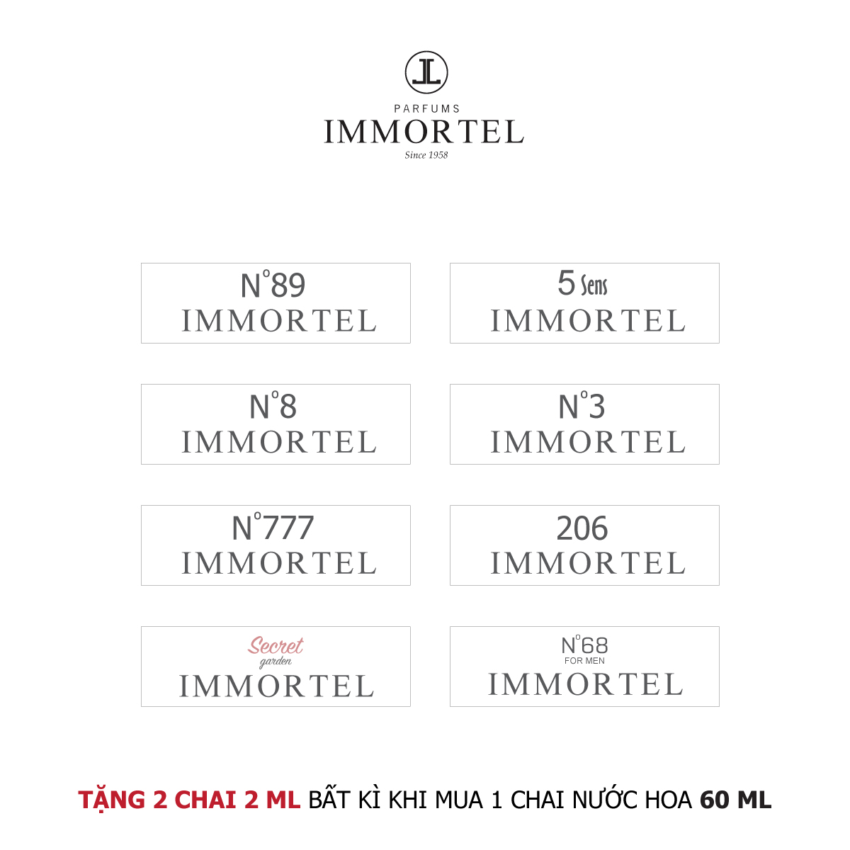 TẶNG NGAY 2 CHAI NƯỚC HOA IMMORTEL PARIS 2ML BẤT KÌ KHI MUA 1 CHAI NƯỚC HOA IMMORTEL 60ML. ------------------------------------ ️ Nước hoa IMMORTEL được thành lập từ năm 1958 và là một trong những