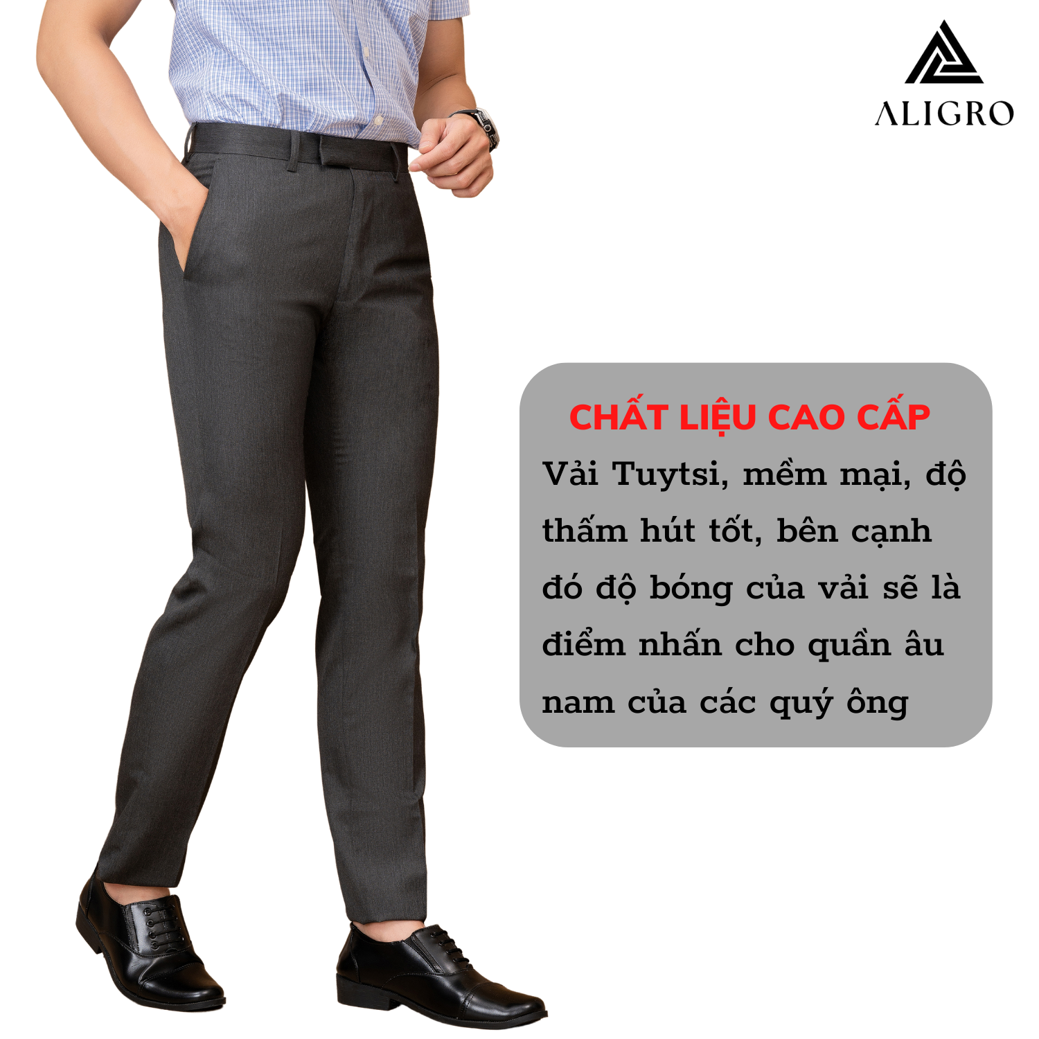 Mua tại Tiktok- GIỚI THIỆU THƯƠNG HIỆU Mang trong mình tầm nhìn chiến lược trở thành thương hiệu “Thời trang nam được yêu thích nhất Việt Nam” nên Aligro luôn chú trọng nghiên cứu phát triển mẫu mã, phom dáng phù hợp với vóc dáng hình thể đàn ông Việt. Sản phẩm của chúng tôi mang tới hình ảnh trẻ trung, năng động, hiện đại mà không kém phần lịch sự, sang trọng - cam kết mang lại giá trị đích thực và một cuộc sống thịnh vượng hơn cho phái mạnh Việt. CHI TIẾT THIẾT KẾ QUẦN ÂU QUẦN TÂY NAM ALIGRO