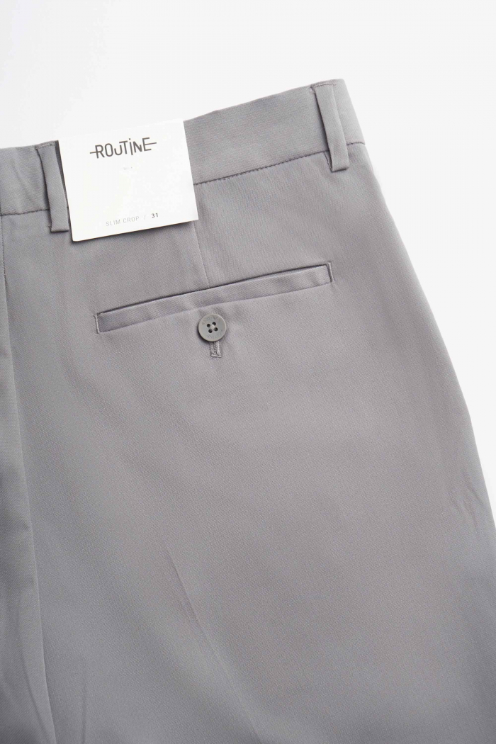 Quần vải / Quần tây dài nam nhãn kim loại. Slim Cropped - ROUTINE 10F25PFO022 Fabric : Poly Rayon Spandex Gender: Nam Collection: Essential 25 Thông tin chi tiết: Chiếc quần tây nam dài này