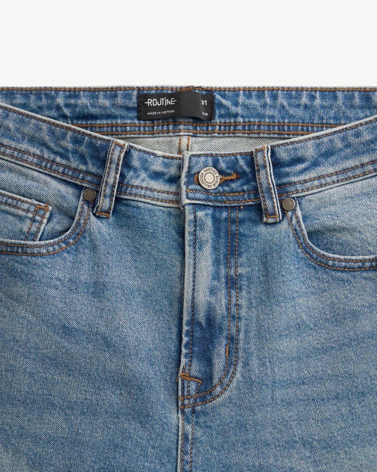 Quần denim nam Form Slim cropped - RT 10S25DPA105C | ROUTINE CÀ MAU Đặc điểm nổi bật Form : Slim cropped Fabric : Denim Gender: Nam Collection: Core Thông tin chi tiết: Mẫu quần denim