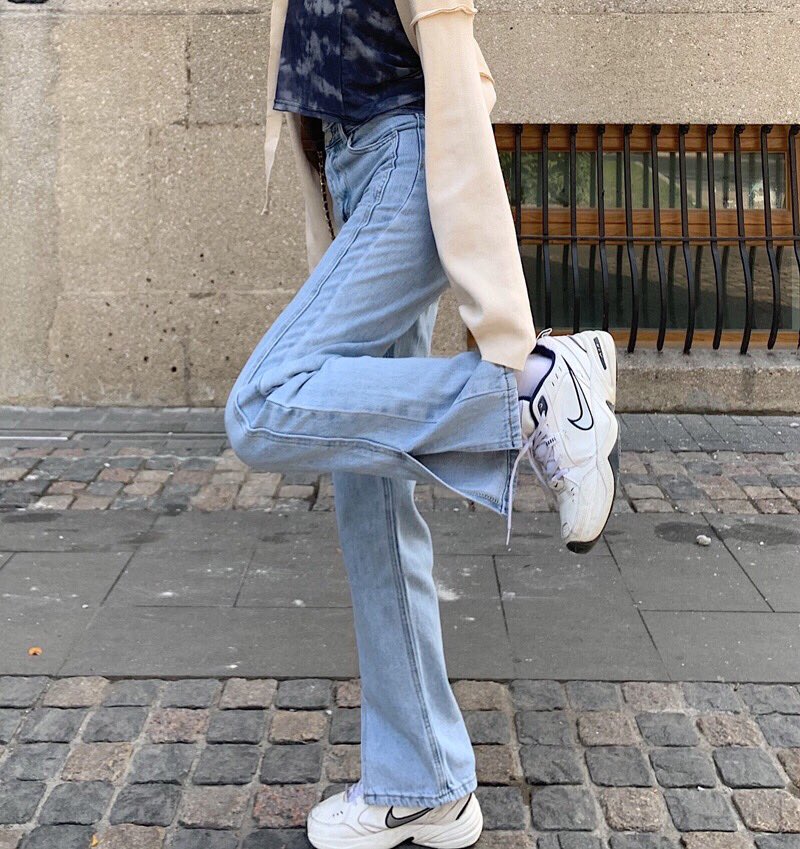 - Tên sản phẩm: Quần Jeans bò nữ cạp cao lưng cao ống rộng xẻ gấu Hàn Quốc
