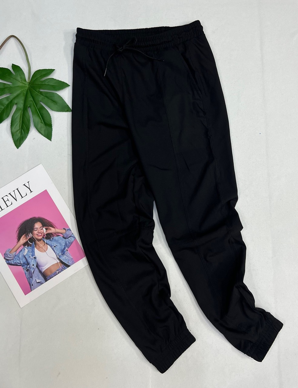 - kiểu dáng quần ống suông - lưng cao, bảng lưng 6cm, cài bằng dây khóa kéo bên hông - đặc biệt nổi bật dù trên nền trắng