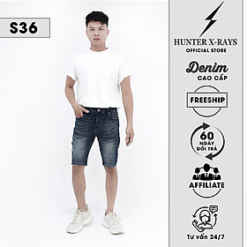 Quần Short Jeans Nam Cao Cấp HUNTER X-RAYS Form Slimfit Thun Màu Xanh S58 #hunterxrays