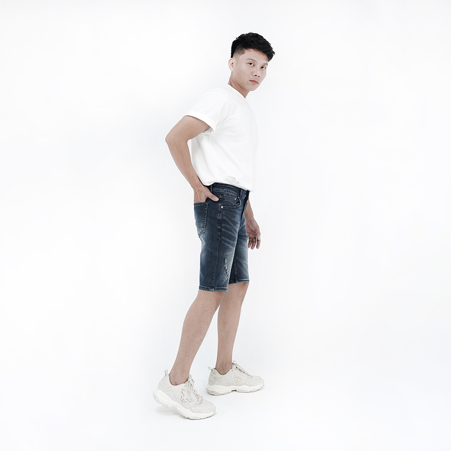 Quần short jeans nam bụi form slimfit thun mài sơn màu xanh đậm S36 | Hunter X-Rays