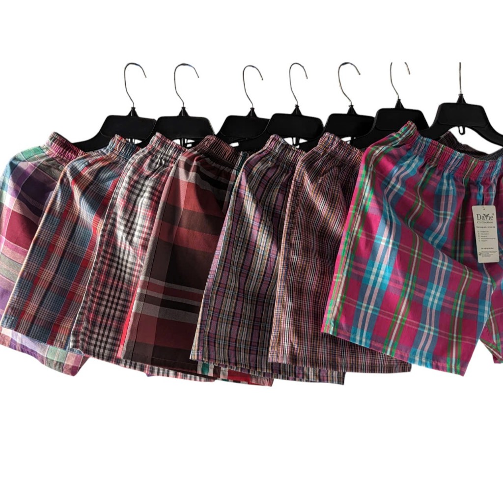 mã quần short mặt nhà Davie Dvs08, chất liệu vải kate 100% cotton, khử mùi và thấm hút mồ hôi tốt. sản phẩm có 5 size(M -> 3XL) và phối màu caro ngẫu nhiên.