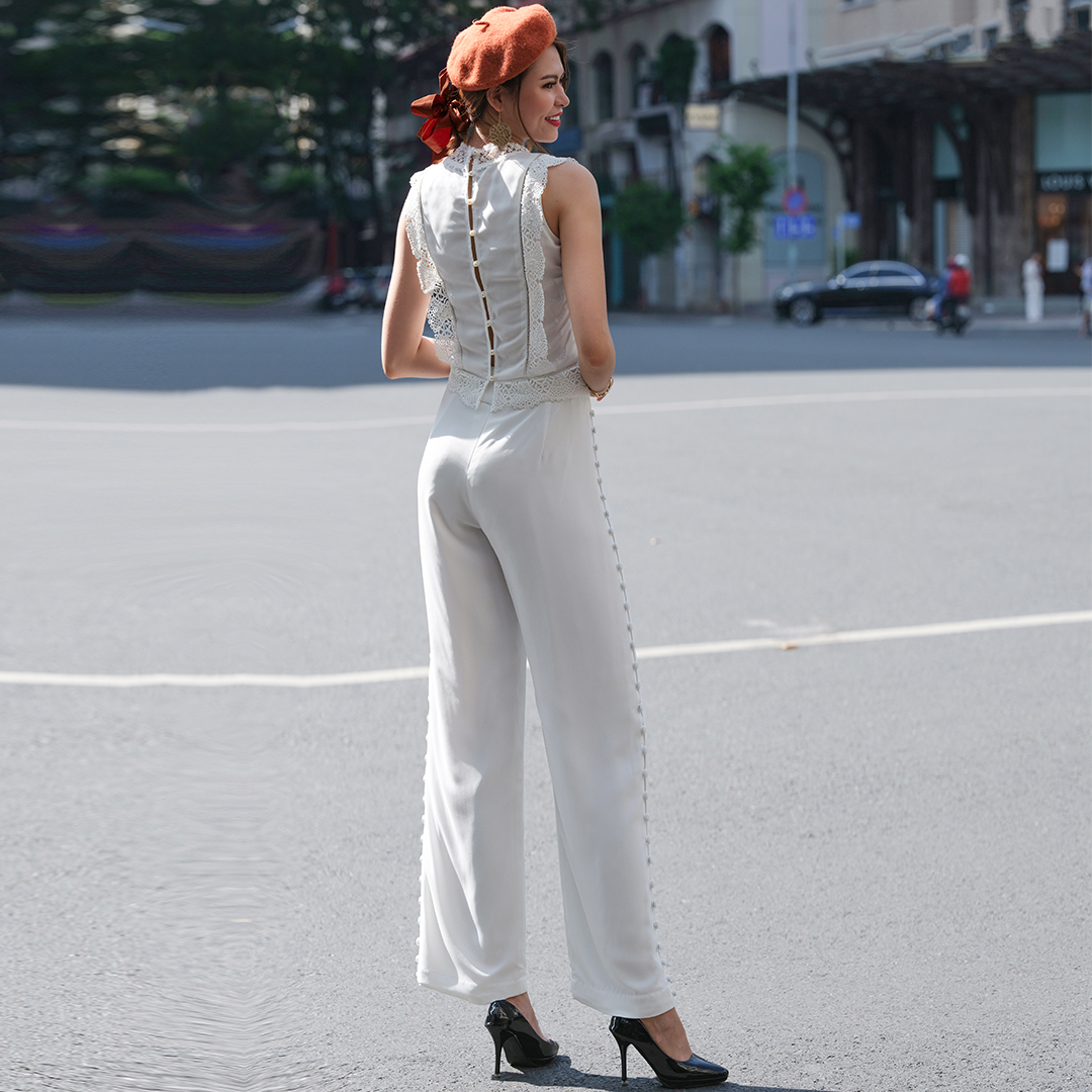 ✨Quần Vô Số Nút Quần Ống Suông Quần Dài Nữ Đẹp Thời trang thiết kế Hity PAN052 (Trắng Kim Cương)