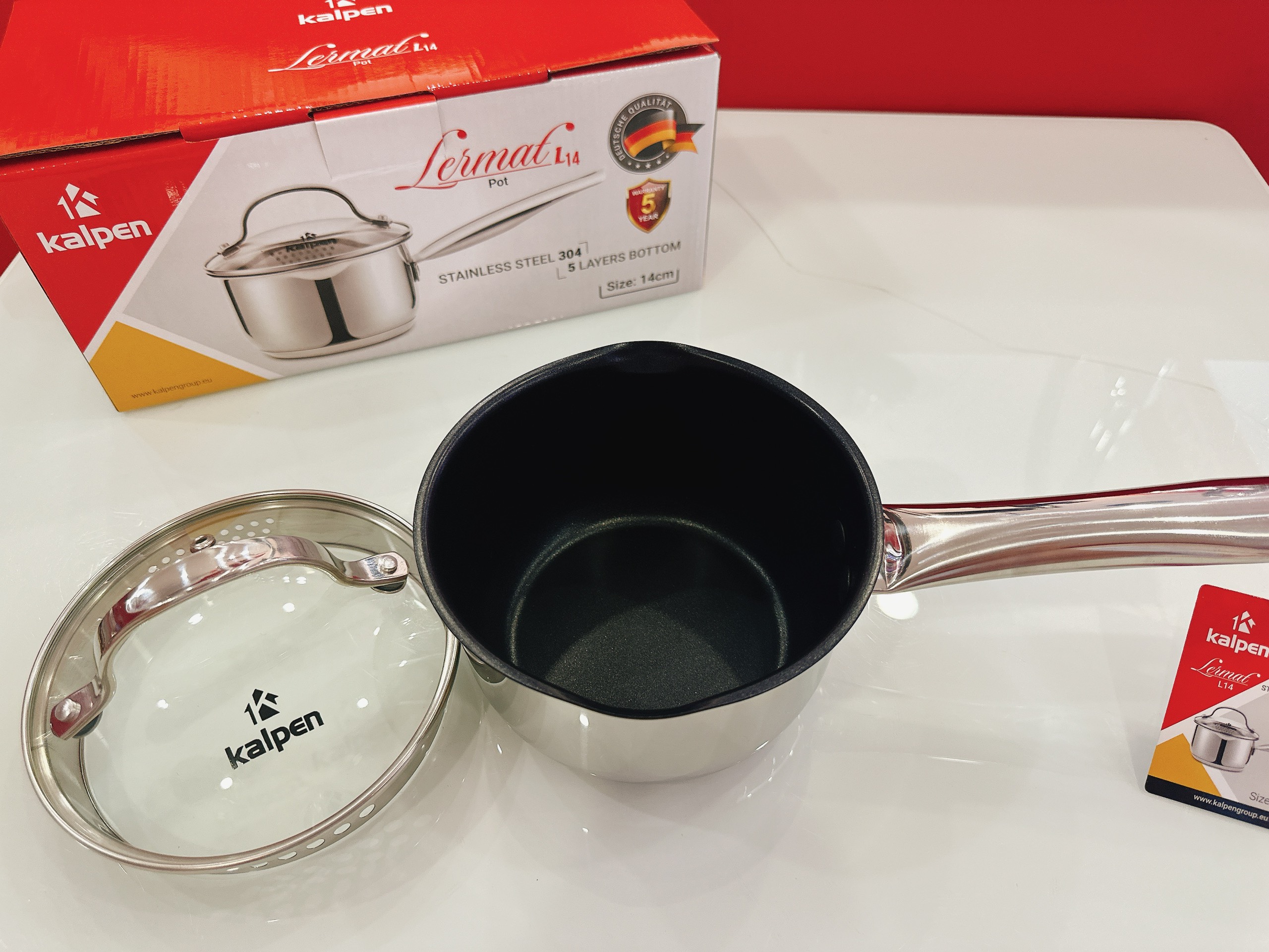 Quánh chống dính Inox 304 đáy 5 lớp Kalpen Lermat size 14cm chuẩn Đức Mã sản phẩm: L14 Thương hiệu: Kalpen xuất xứ Đức Dòng sản phẩm: Lermat Chất liệu: Inox 304, vung kính cường
