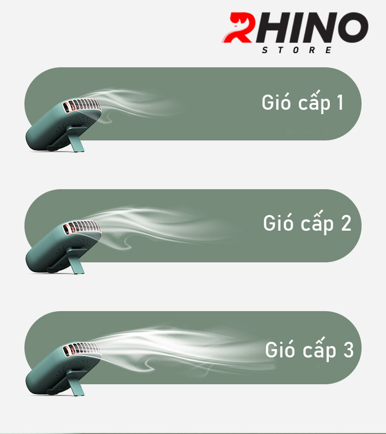 ✨Quạt cầm tay mini siêu mát Rhino F301 tích điện với 3 mức độ gió, lưu lượng cao kèm dây treo - Hàng chính hãng