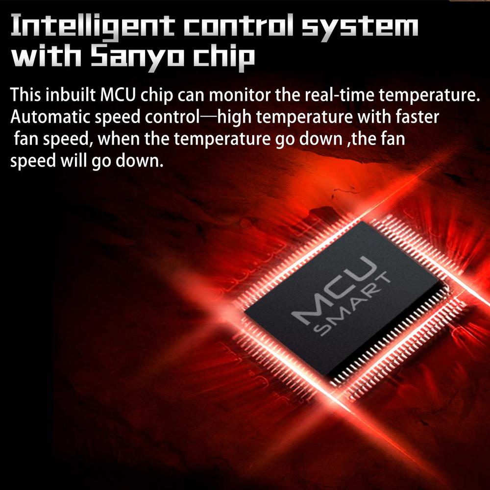 The cooling fan is specially designed for cooling your laptop and adopts real-time temperature control technology and aluminum air outlet for rapid cooling performance. Low-noise design offers you a very quiet working environment, which makes