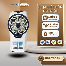 Quạt điều hòa tích điện Sowun SW 805S là thiết bị làm mát hoạt động theo nguyên lý bay hơi nước (tương tự máy làm mát không khí) của hãng Sowun, có thêm hệ thống pin sạc tích điện, giúp duy trì hoạt động từ 02 – 8 tiếng ngay cả khi mất điện. Thiết kế thường nhỏ gọn, có bánh xe di chuyển dễ dàng và thích hợp cho không gian gia đình, văn phòng nhỏ, cửa hàng,…