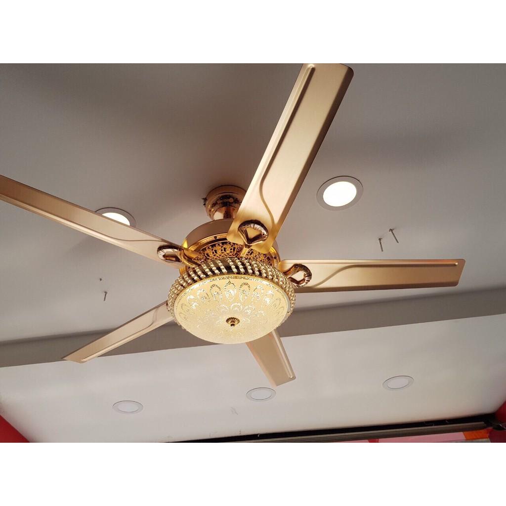 Mua tại TiktokMàu sắc :Vàng Sải cánh : 1320mm Động cơ: 153x18mm Công suất : 80W AC Chất liệu cánh : 5 cánh thép Chao đèn: 30cm Ánh sáng : 3 màu