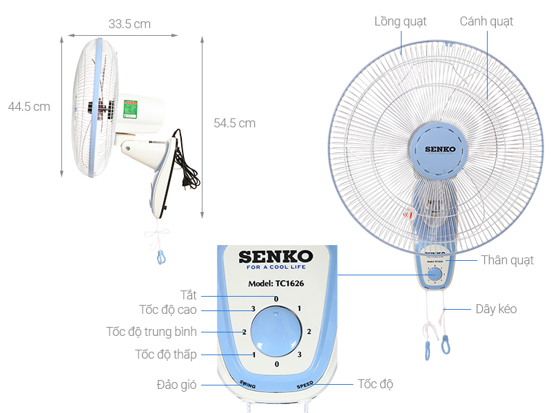 Quạt treo tường Senko 2 dây TC1626 | Senko 2-wire wall fan TC1626 | Quạt treo tường SenKo