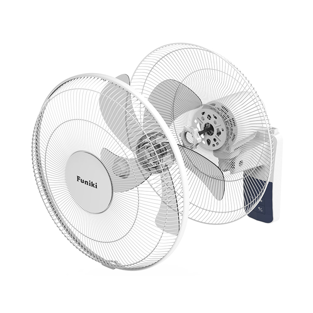 Quạt treo tường Mitomo được thiết kế đơn giản, hiện đại với tông màu trắng và màu xanh than chủ đạo. Thân quạt và lòng quạt làm từ nhưa ABS cao cấp, mang lại vẻ