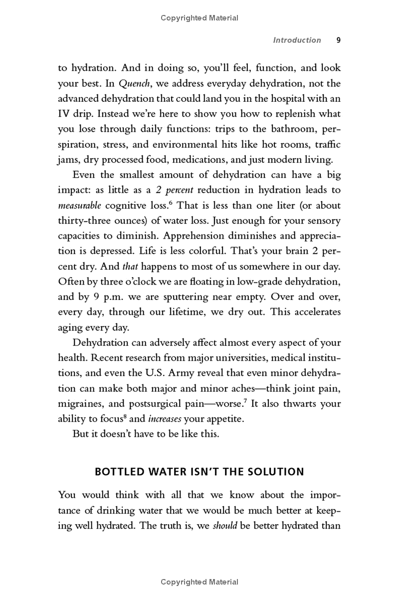 Based on breakthrough new science in the field of hydration, Quench debunks many popular myths about "getting enough water" and offers a revolutionary five-day jump start plan that shows how better hydration can reduce or eliminate ailments like chronic headaches, weight gain, gut pain, and even autoimmune conditions.