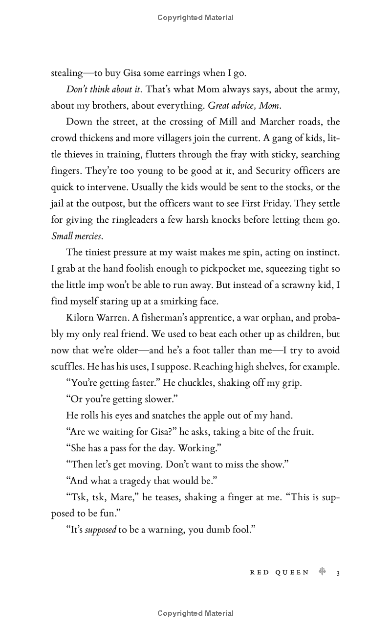 The Reds are commoners, ruled by a Silver elite in possession of god-like superpowers. And to Mare Barrow, a seventeen-year-old Red girl from the poverty-stricken Stilts, it seems like nothing will ever change.