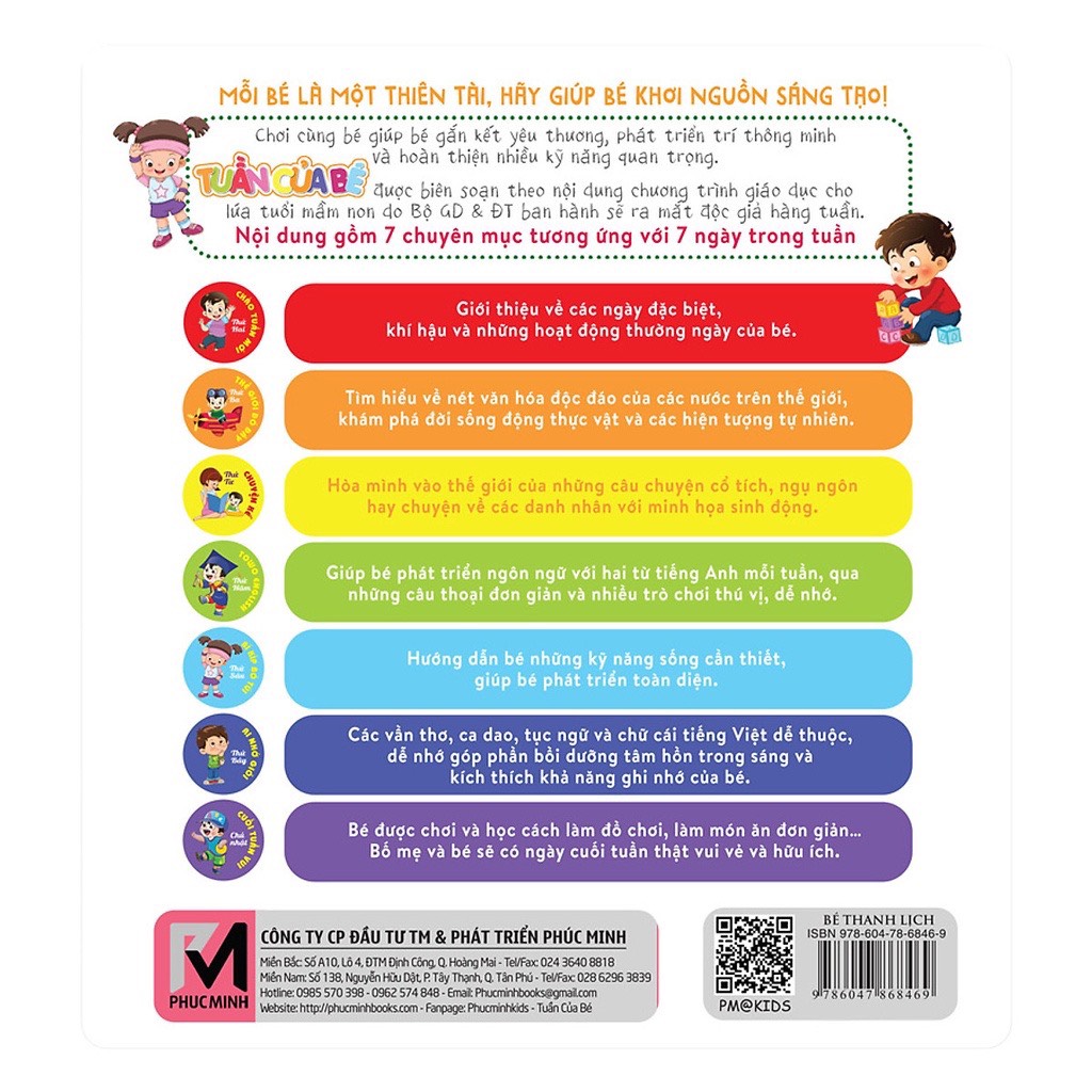 Combo gồm 4 cuốn Tuần của bé dành cho các bé sinh từ ngày 23/9 đến 22/10 thuộc cung Thiên Bình nhé! Đó là các cuốn: Bé thân thiện - Bé tinh tế - Bé công bằng - Bé thanh lịch;
