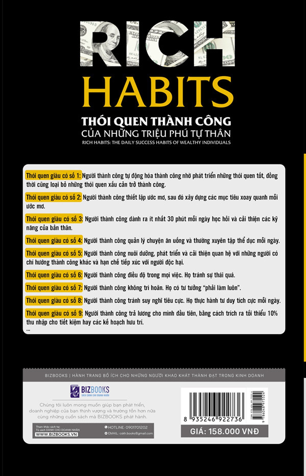 Thói quen thành công của những triệu phú tự thân – Rich Habits – Cuốn sách giúp cuộc đời bạn đi đến thành công Mọi điều bạn làm hàng ngày đều quan trọng. Thói quen hàng ngày sẽ giúp bạn thành công hay không thành công trong cuộc đời.